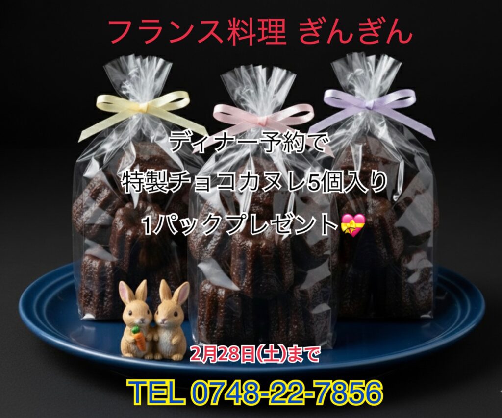 外は香ばしく、中はしっとり。フレンチの技を活かしたぎんぎん特製チョコカヌレです![]()
