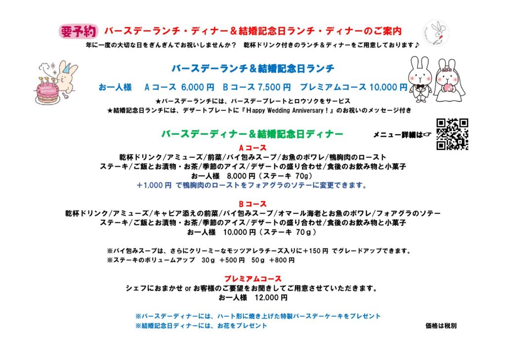 年に一度のバースデーだからこそ『贅沢なディナーを楽しみたい…』そんなあなたにおすすめできる特別コースです。